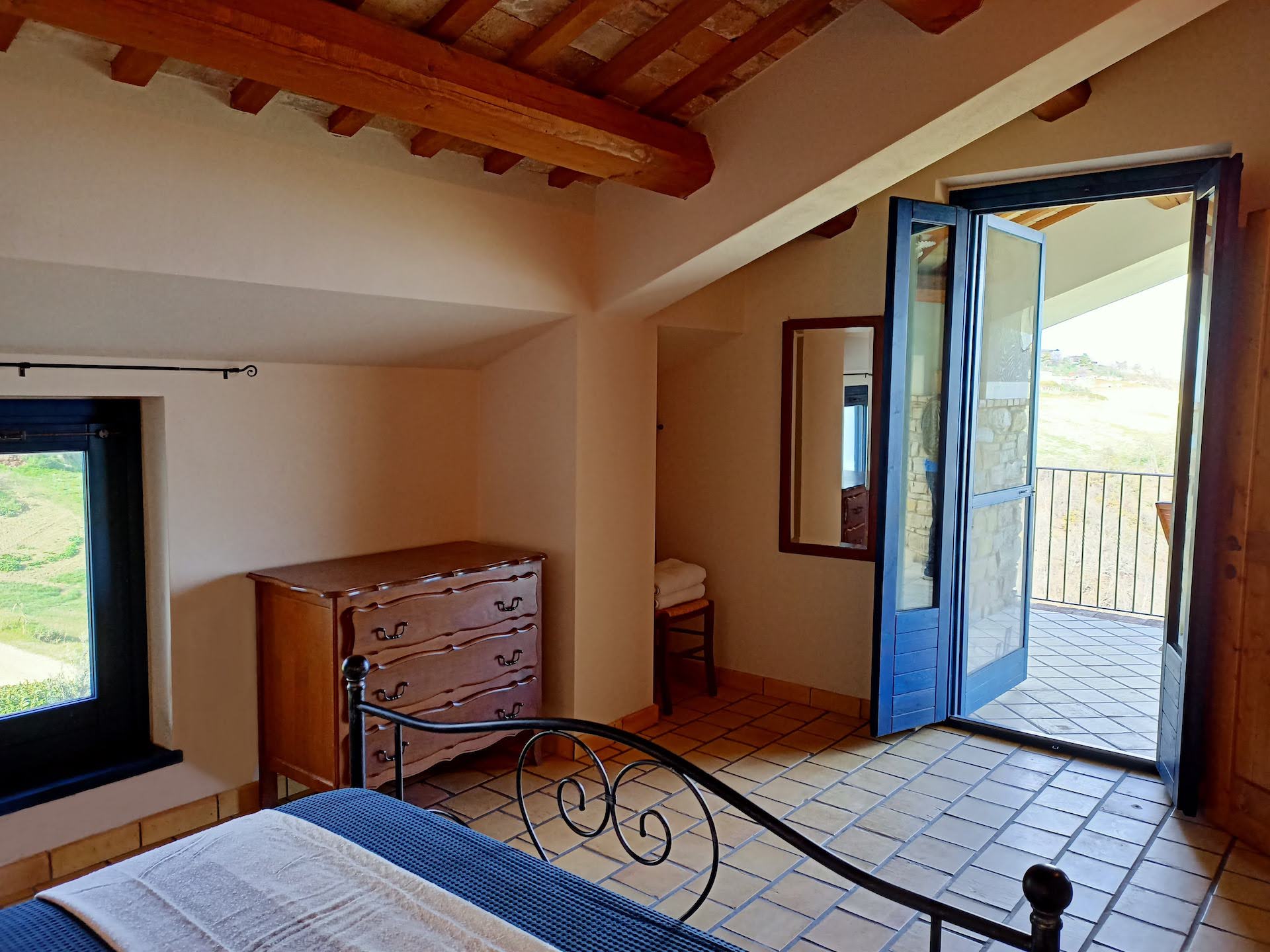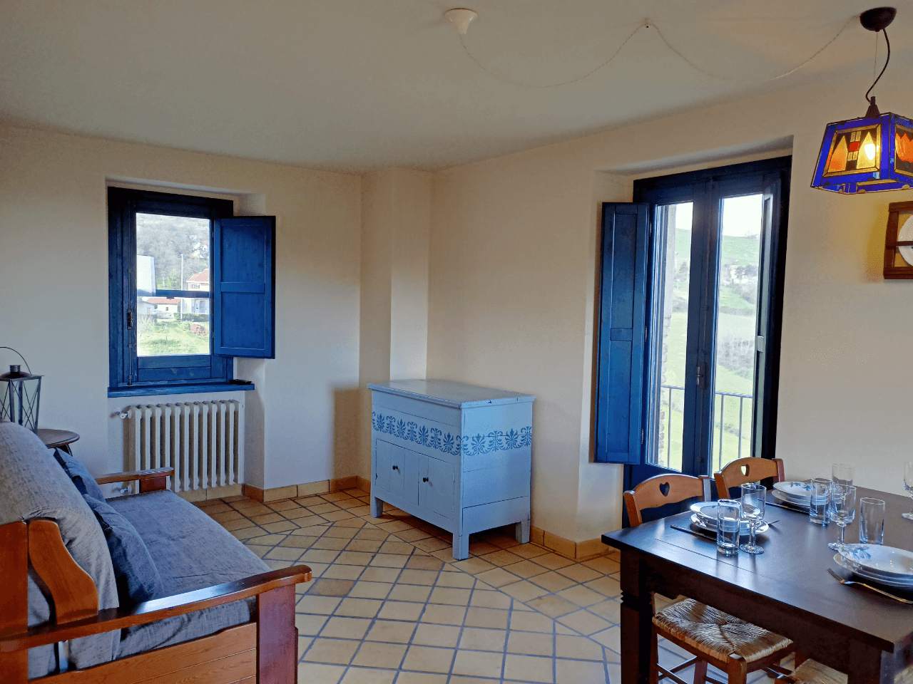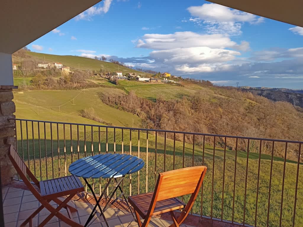 Outside, at the entrance to the apartment, there is a small private terrace. This is a great spot to enjoy breakfast whilst you plan your day ahead. However, for us, the real highlight of this property are the breathtaking panoramic views that await you from the second floor covered terrace. From here, the valley stretches out in front of you. As the sun fades each day, you can sit gazing at the lights of several medieval villages twinkling in the distance.