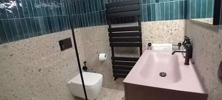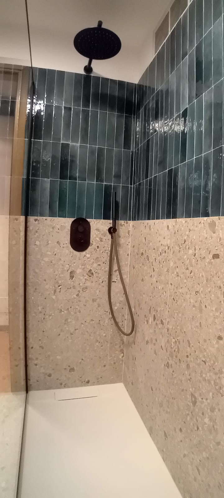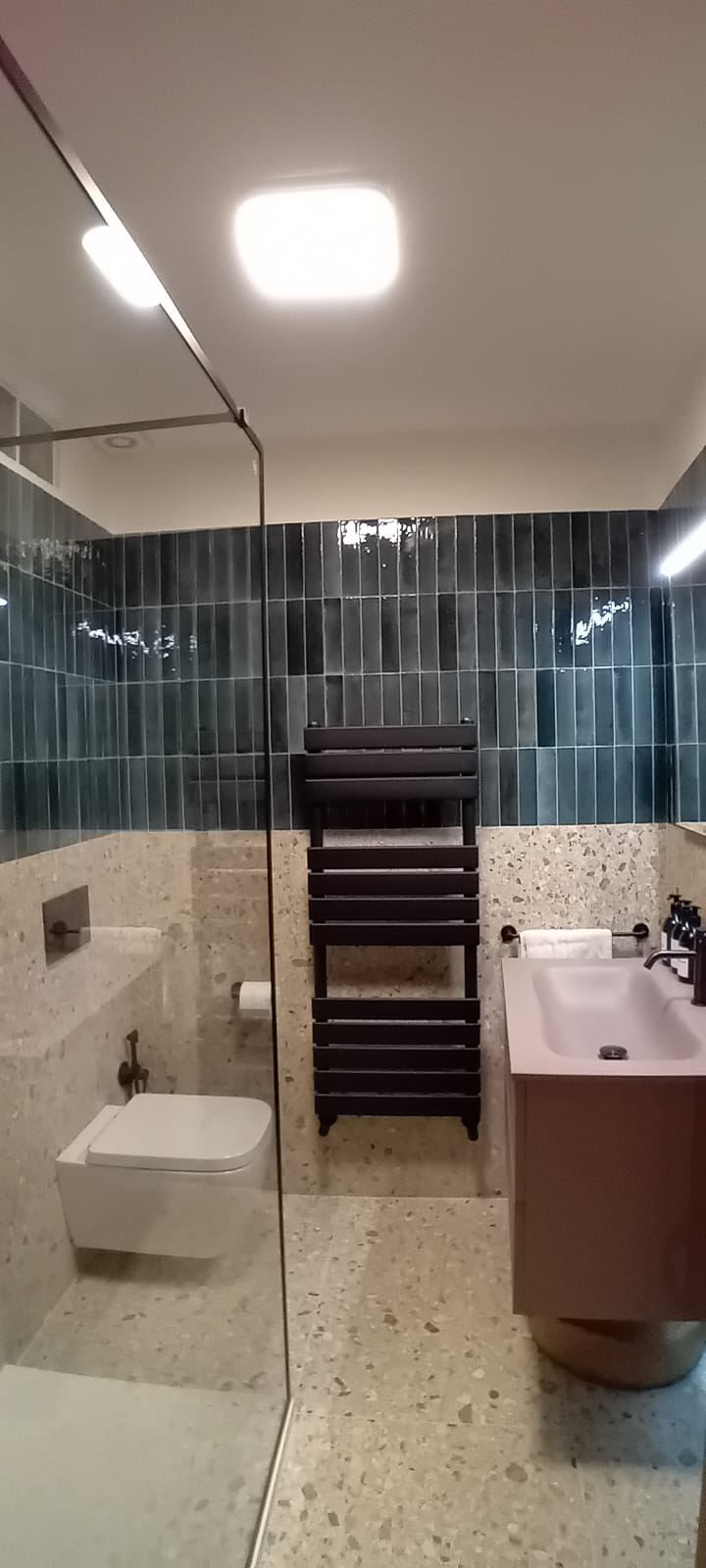 Moving through this Italian Lakes 2 bedroom apartment, there are two bedrooms. These share a bathroom with shower. The bathroom is new for 2025. The master bedroom is decorated in a calm, neutral palette, perfect to inspire relaxation before a good nights sleep. It has doors leading directly to a narrow outdoor terrace and is furnished with a double bed (140cm X 190cm). The other bedroom is larger and is a triple room with double bed (140cm X 190cm) and a single bed (90cm X 190cm). Should guests require additional sleeping space, there is a sofa bed in the living room that we can supply bedding for on request, or we can also provide a cot if required.