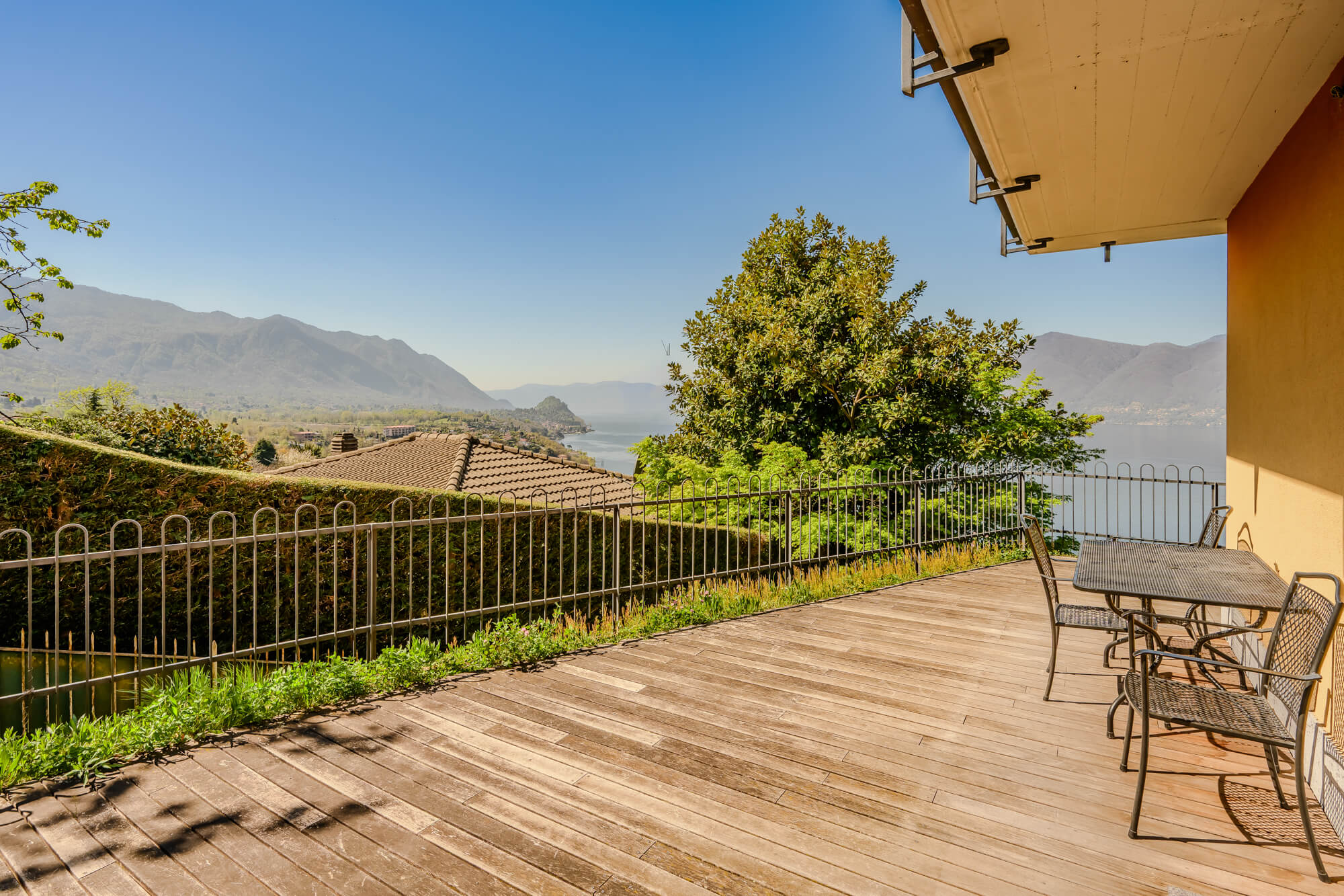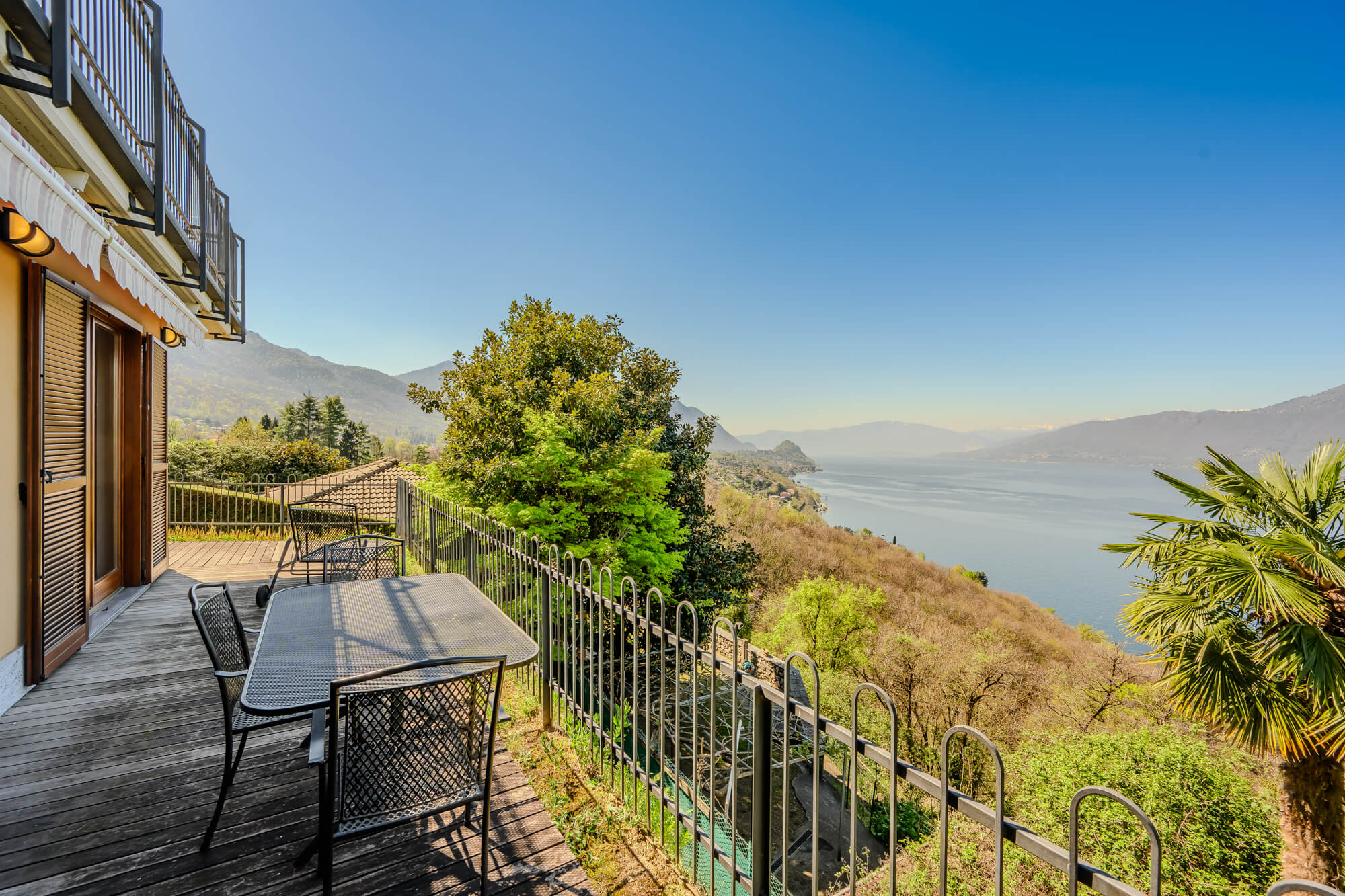 We were blessed with fabulous weather. Sunshine, spring and uninterrupted panoramic views from the balcony around the apartment. Fantastic inside-outside space to eat every meal, drink and sit. The apartment was very well equipped, modern with contemporary decor. 2 spacious double bedrooms and one smaller converted room with bunk beds. Sleeps 6 really comfortably; additional 2 on sofa bed if needs be. Clean and well presented and friendly neighbours. Flat nested in peaceful local village. 24/7 supermarket within 5 minute drive. Great information available in the flat. Loads to do in the area. Went with 3 teenage boys- fantastic football pitches locally, awesome swimming pools and spas 30 minutes away, mountain biking, zip wires and roller coasters; Culture and boat trips across the lake to fantastic botanical gardens and towns from the Grand Tour. Great apartment to access awesome mountain walks, National Parks – Campo dei fiori and off course, Milan. Fabulous restaurant at 5 minutes walk and others at 10 minute drive. We can’t wait to go back again. Special offers to returners in off season / winter, where there is access to local small ski resorts within 40-60 minute drives. Only thing to be aware of is the short access road to the property is very steep. Fine to drive, walk etc. But could be problematic if mobility is an issue for you.