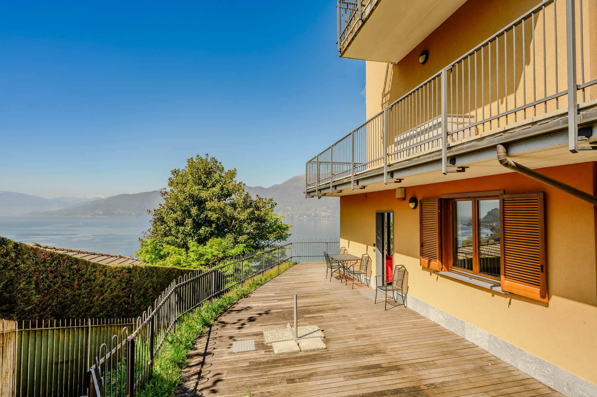 Excellent kitchen – well equipped, everything working well and loved the fridge & constant ice! Beds very comfortable and bathrooms good standard and well maintained. Deck / balcony fabulous – we adored the view and appreciated all the furniture provided and the lovely clean, new chair pads. Appreciated supply of soap, washing up liquid, dishwasher tabs, loo paper etc (we got none of this at our subsequent apartment on Garda!). Have rarely stayed in rented accommodation where so much thought had clearly gone into what we might need and our children appreciated the free WIFI as well! As you say, it was hot and we would have had difficulty sleeping had we not brought our own fans (perhaps the apartment could have a few of its own provided?). The deck area did not have enough shade at the end of the day – perhaps another umbrella, or even an awning like some of the other apartments in the building? Bed linen is a little past its best (and we were one duvet cover short) which was a bit of a shame as everything else was to such a high standard. Imitalia gave us the wrong key and I (stupidly) did not check on the spot, so we had to return all the way back to Luino to get the correct keys, which caused us a bit of stress and hassle. We did miss the tiny little turning initially – some sort of sign approaching from Luino would be so helpful. We had trouble finding where to take our rubbish – some info on this in the apartment would be useful. Sorry, this sounds very critical and it’s not meant to be. We rent 5/6 properties in the U.K. and Europe every year and Sopra di Lago was without doubt one of the nicest we have stayed in and one that will stay in our memories for a very long time. I would recommend it to anyone and will do one of my usual TripAdvisor reviews saying so!