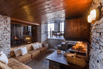 As guests enter Villa Ispra they go into a living and entrance area equipped with fireplace. A few steps lead down from here to the dining area. To the left of this room are three bedrooms, each with their own bathroom. A second living area enjoys doors directly to the terrace and gardens and leads through to another area which is commonly used as a games area for children and teenagers. The kitchen also enjoys doors leading directly to the garden. This room is well equipped with all the equipment you could need.