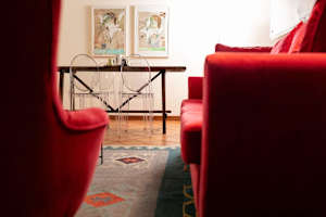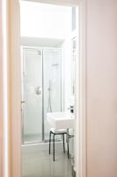 Inside, the living space measures 90 square metres. One bedroom has a large double bed whilst the the second bedroom can be arranged either with two single beds or a large double bed. Both bathrooms have showers. There is a kitchenette in a comfortable living room. This is equipped with an electric stove, oven, refrigerator, Nespresso coffee machine and dishwasher. There is also a washing machine for guests to use. Two balconies are furnished with circular tables and chairs overlooking a charming internal courtyard and the street below.
