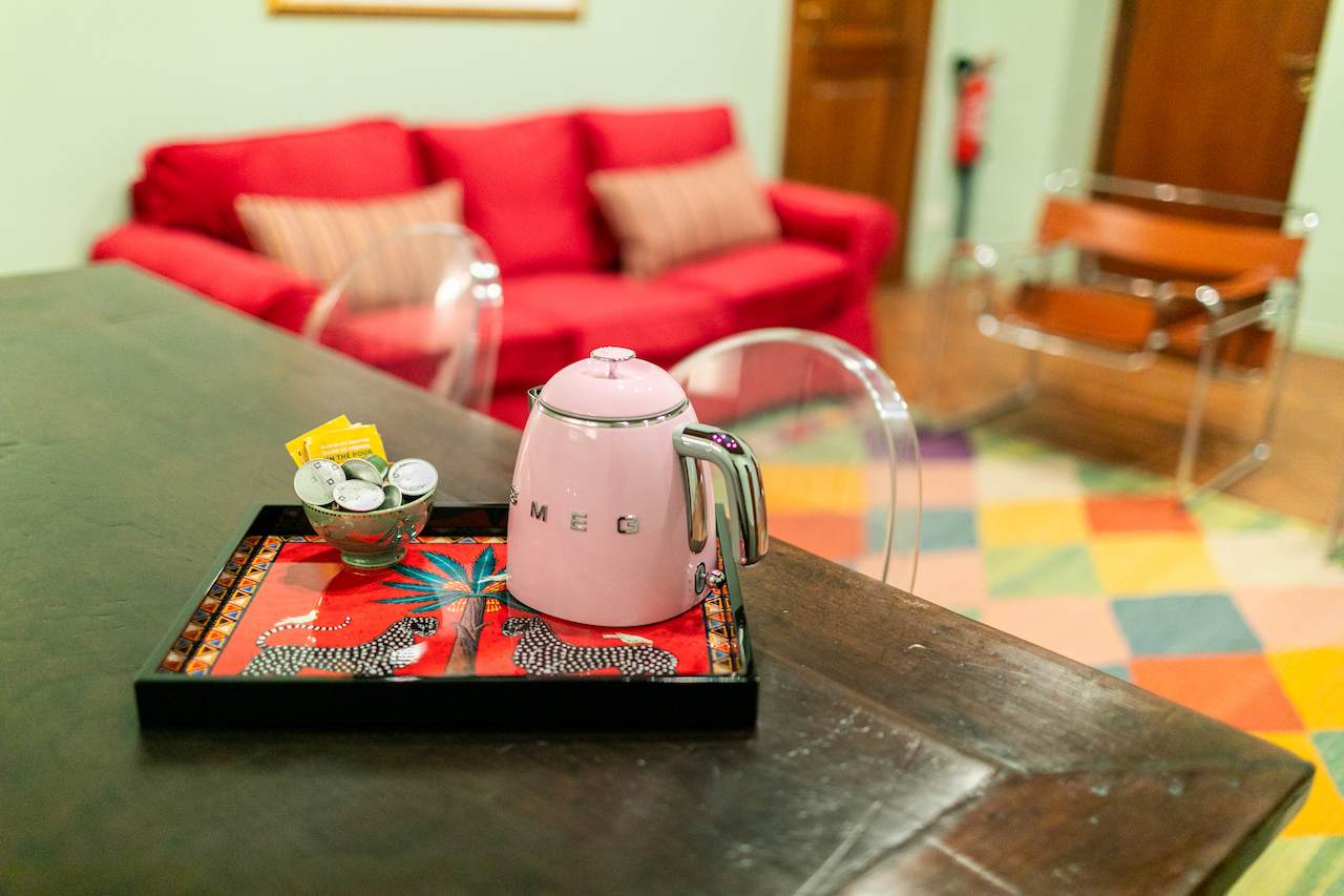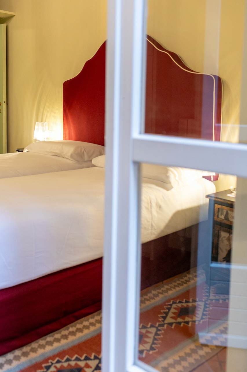 Inside, furnishings are stylish and colourful, using rich fabrics and deep colours to add character and warmth. For those staying in the warmer months of the year, guests have the added bonus of a private balcony to enjoy. This is furnished with a small table and chairs. It's a lovely spot to enjoy breakfast or an aperitivo before heading out to dinner.