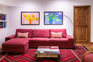 Inside, the living space measures 200 square metres. It is beautifully furnished with designer pieces, whilst colourful artworks adorn the walls. It works really well both for groups of friends as well as for families with children.