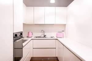 The kitchen is fully equipped with modern units and SMEG appliances. There is an induction hob, oven, dishwasher, Nespresso coffee machine and kettle. A washing machine is also provided for guest's convenience.