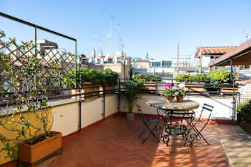 This Rome penthouse is situated on the Via del Babuino. This is Rome's high-end shopping street, home to stores such as Chanel and Gucci. It's great for window shopping! It runs all the way from the Piazza del Spagna to the Piazza del Popolo. This apartment is closer to the latter - the Piazza del Popolo is just a 5 minute walk away. For those visiting Rome to enjoy some sightseeing rather than shopping, it's also just over 5 minutes to reach the Spanish Steps on foot. And, it's a 15 minute walk to the Trevi Fountain, 20 minutes by foot to the Pantheon and 40 minutes to both the Colosseum and the Vatican City.