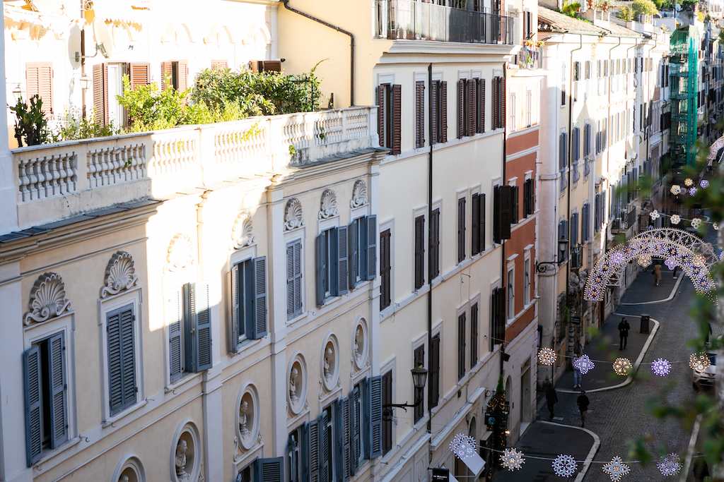 In addition, the apartment boasts a terrace overlooking the famous Via del Babuino. The terrace measures 50 square metres and is a charming spot to admire the view over the rooftops of Rome. There is also a balcony which has views over the nearby Piazza del Popolo.