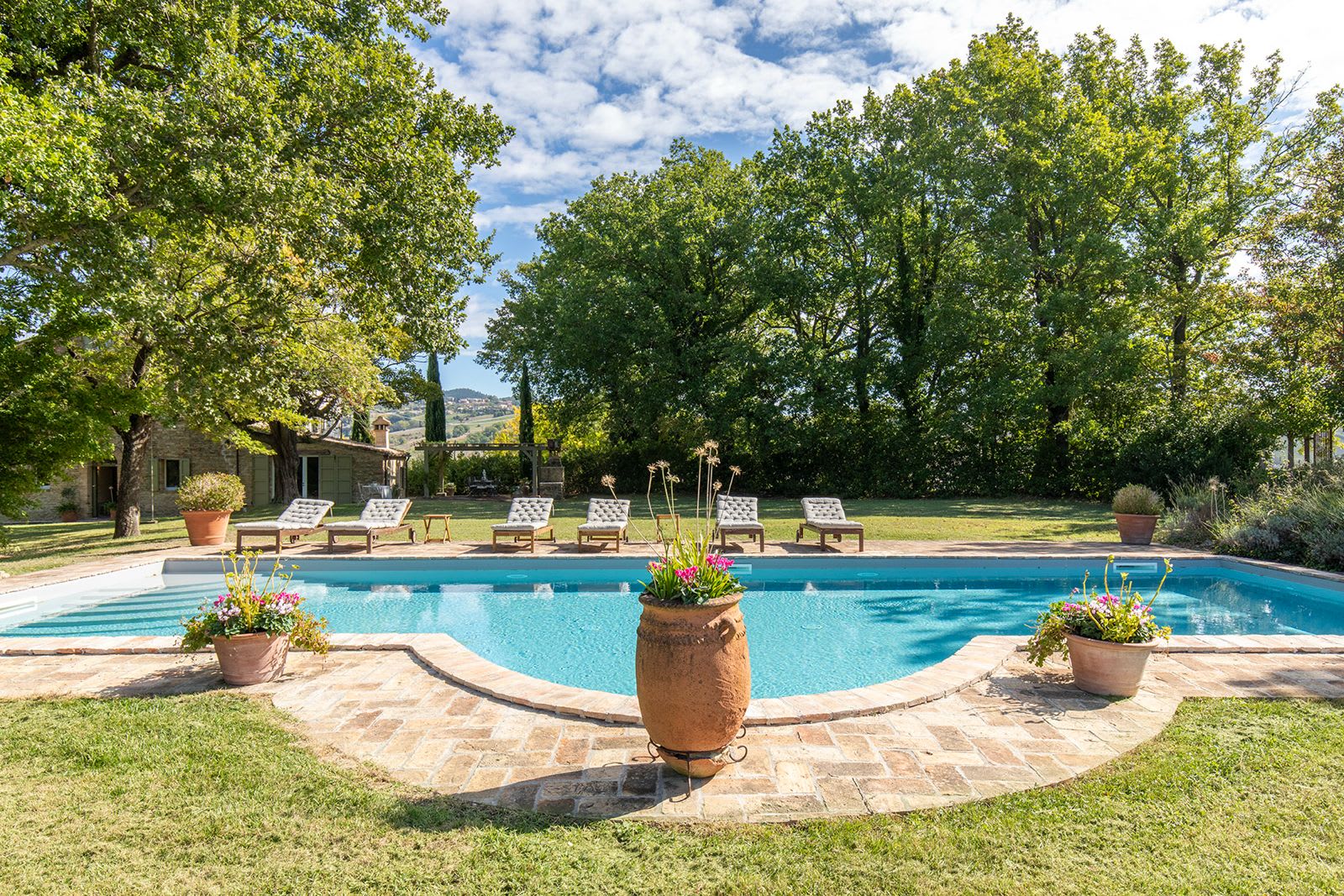 This luxury Marche villa rental is simply beautiful. We love it. The owner has put her heart and soul into the renovations and furnishings, creating an incredibly stylish and comfortable property. The gardens are simply idyllic... let the children re-discover the simple pleasures of cooling off in the stream or opt for the 21st century pool to enjoy a few lengths or enjoy some pool games. It's a villa you definitely won't want to leave at the end of your holiday!