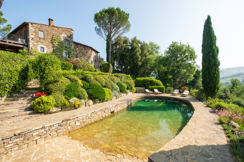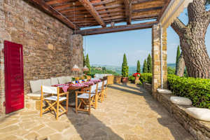 Villa Corta is surrounded by well over 20 acres of olive groves, vineyards and gardens. The views from the outdoor terrace are breathtaking. A charming stone-lined swimming pool measures 14 x 4.2 x 2.3 metres. Sun loungers are arranged around the pool and there is also a wet bar with sink here along with an outdoor shower. Guests also have a bocce court, table tennis table, a fenced tennis court and a gym to use. Children can also enjoy themselves on the fenced trampoline.