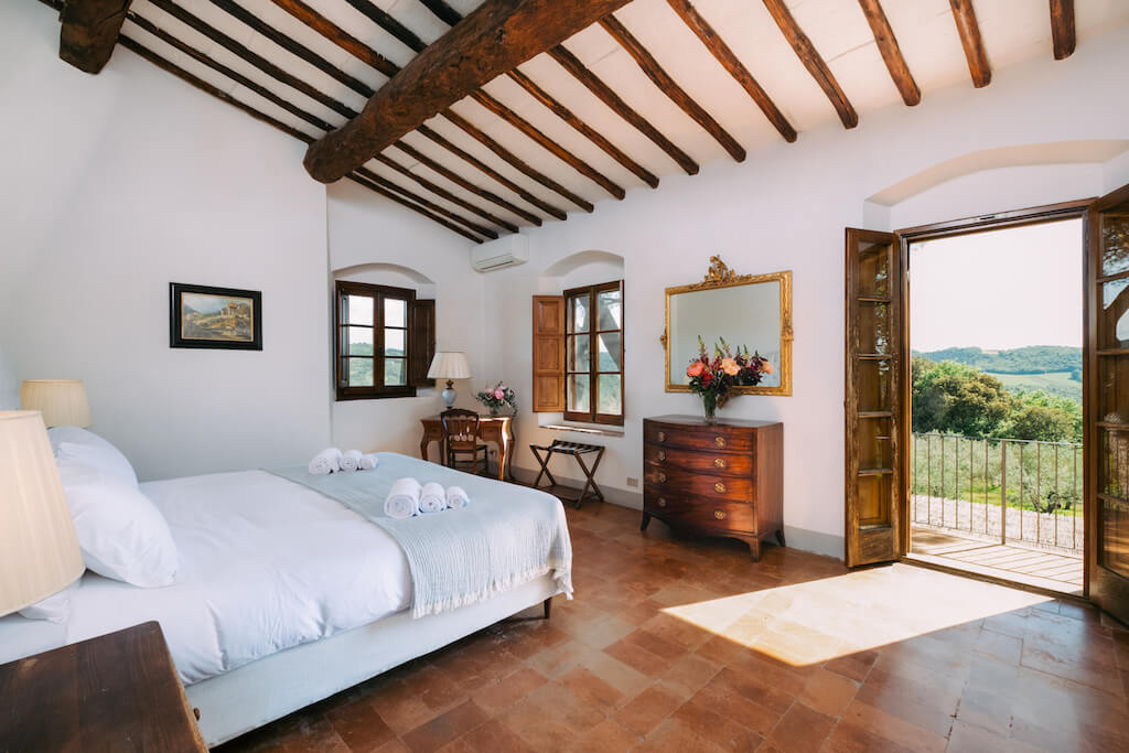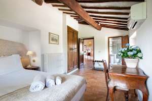 The villa is located just a few steps from a pathway that leads to various walking and cycling routes along the Pesa River. It's a spectacularly stunning area to explore on foot. Greve in Chianti is the nearest town and is 9 km away. There is a great selection of typical trattorias and restaurants here as well as a number of shops and other amenities. Also worth visiting are the other charming villages along the Via Chiantigiana including Castellina in Chianti, Radda in Chianti and Gaiole in Chianti. San Gimignano is 38 km and Florence 34 km. Monteriggioni is approximately 43 km from Villa Corta, Siena is 58 km away and Pisa 94 km.