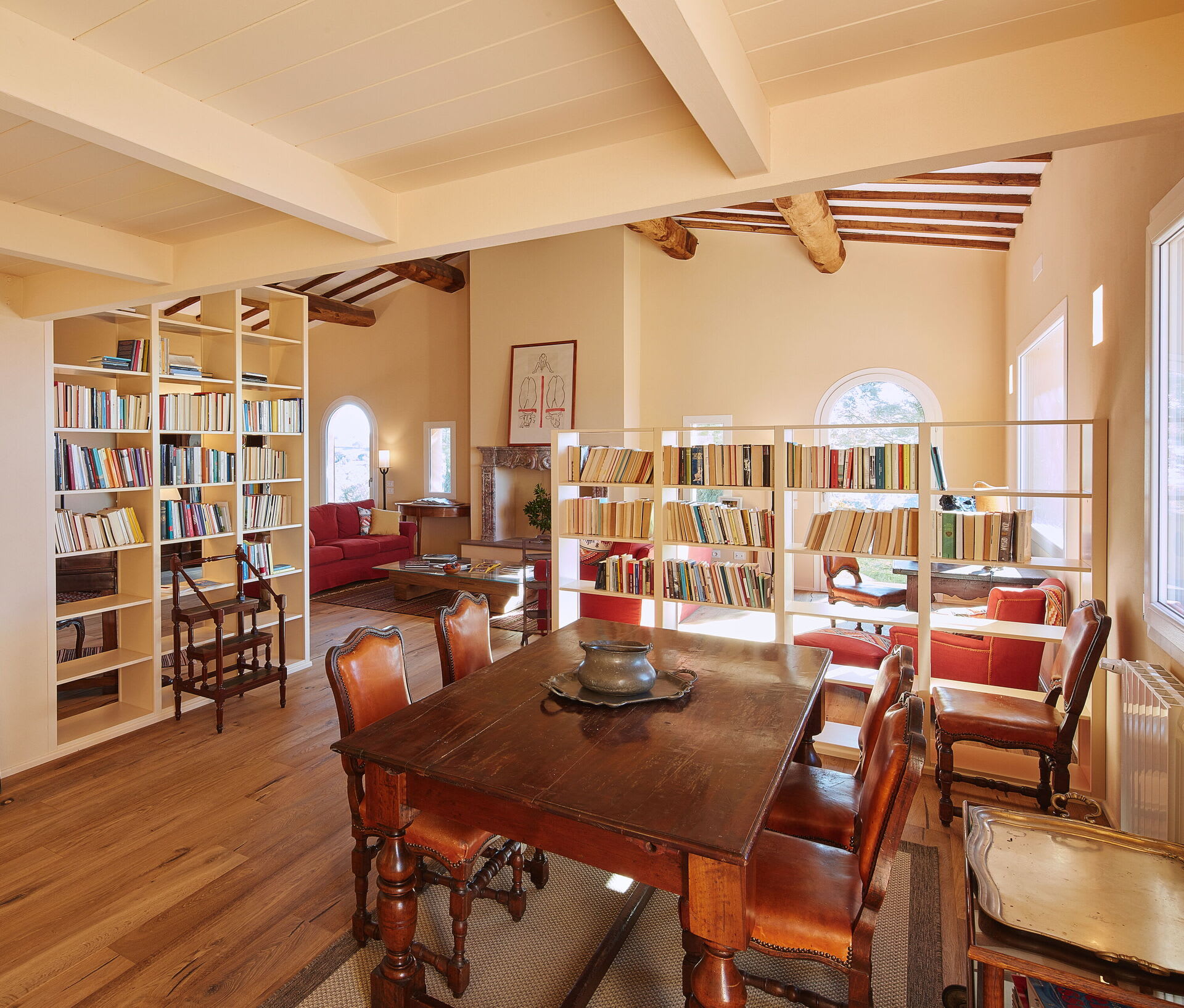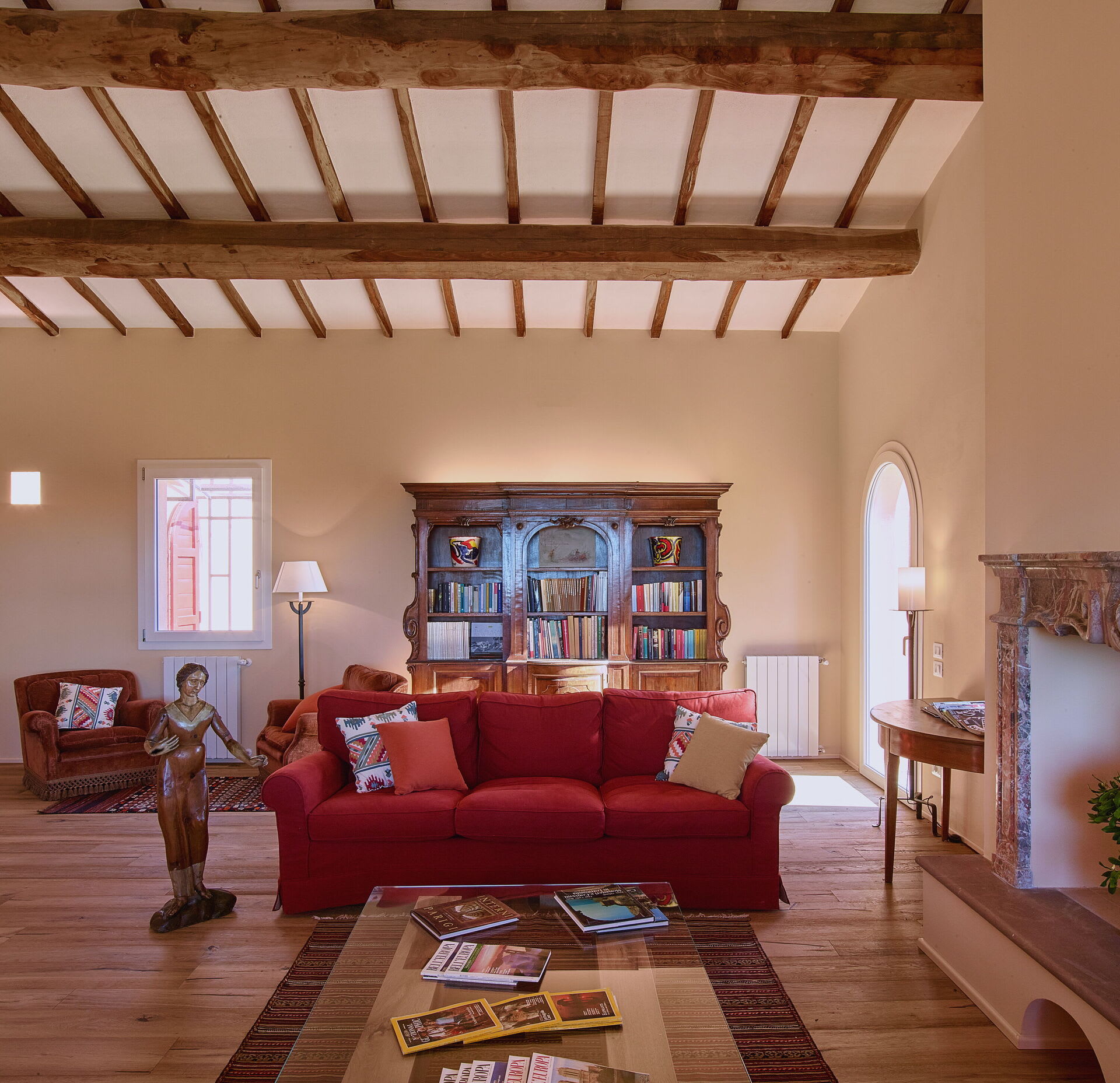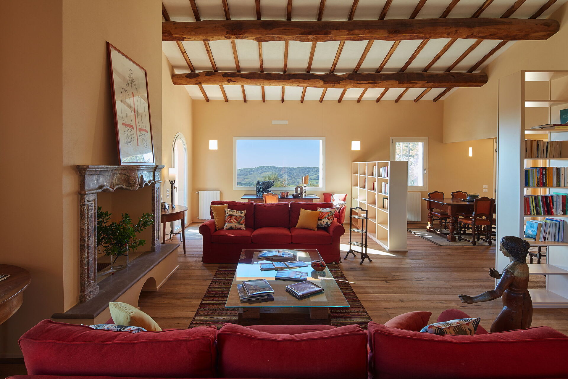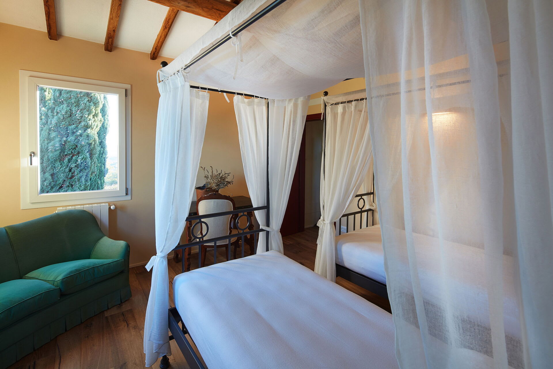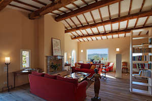 The villa blends modern comfort with rustic Tuscan charm. Rooms are spacious, elegant, bright and welcoming. French doors allow for a natural flow between the interior and exterior, bringing the light and the beauty of the surrounding countryside indoors, whilst the layout ensures that everyone can find their own quiet corner, while still enjoying the generous shared spaces of the living room, kitchen and dining area.