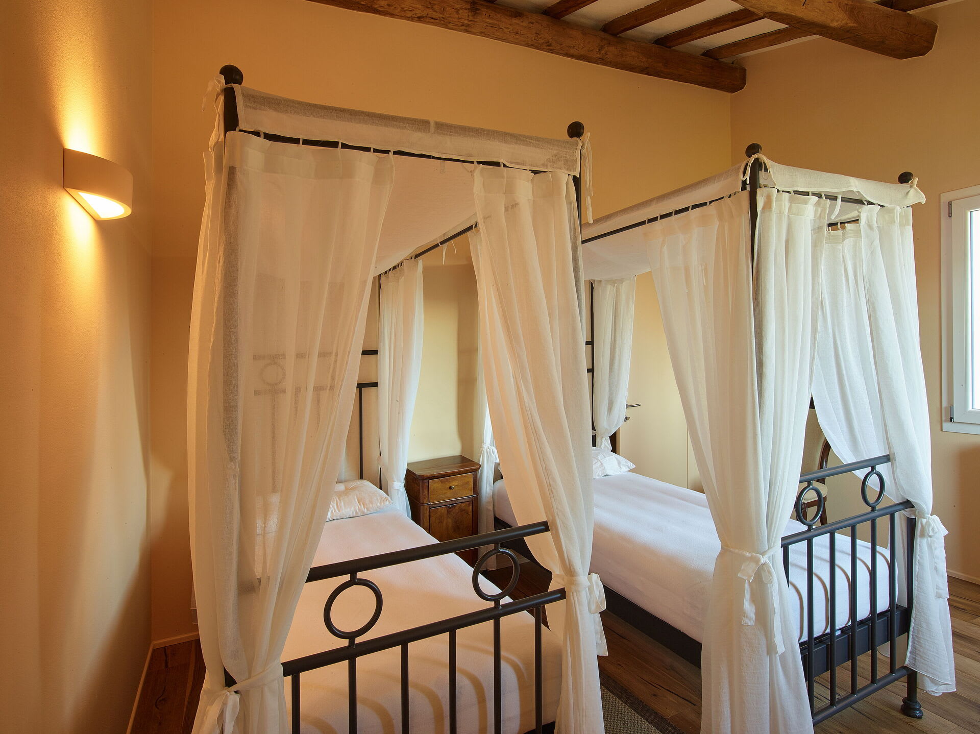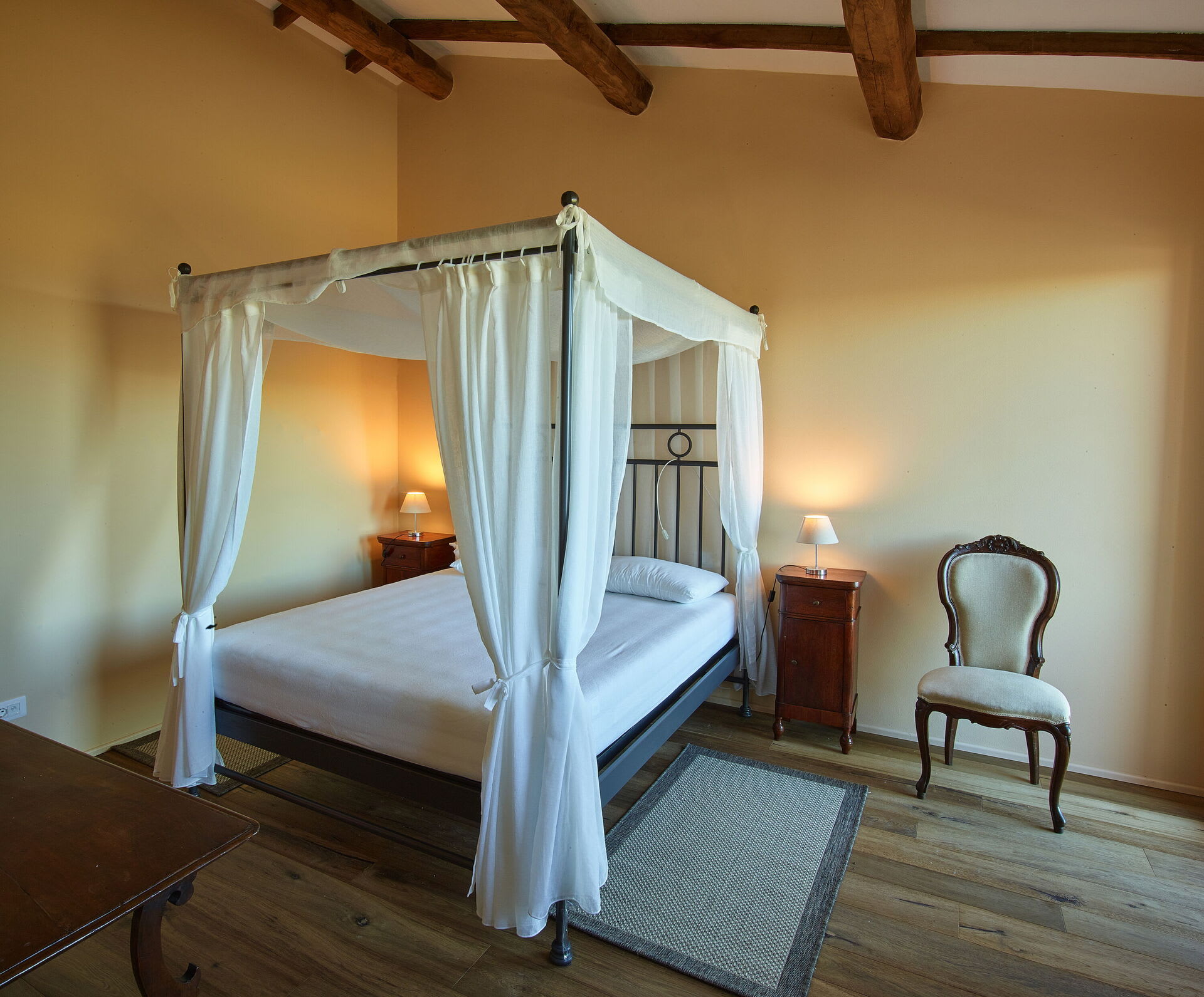 On the first floor, there is another double bedroom with private bathroom with bath tub, equipped with a wardrobe and minibar fridge. Once again, this room can also accommodate an additional single bed if required.