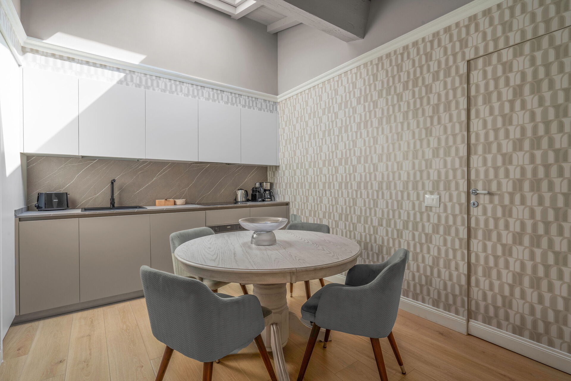 The decor throughout is in muted creams, whites, beiges and greys creating a calming and relaxing space. Artworks add a pop of colour to the space and add character and warmth. It's the perfect antidote to a busy day seeing the sights of Florence.