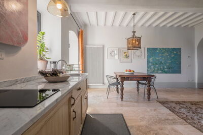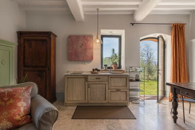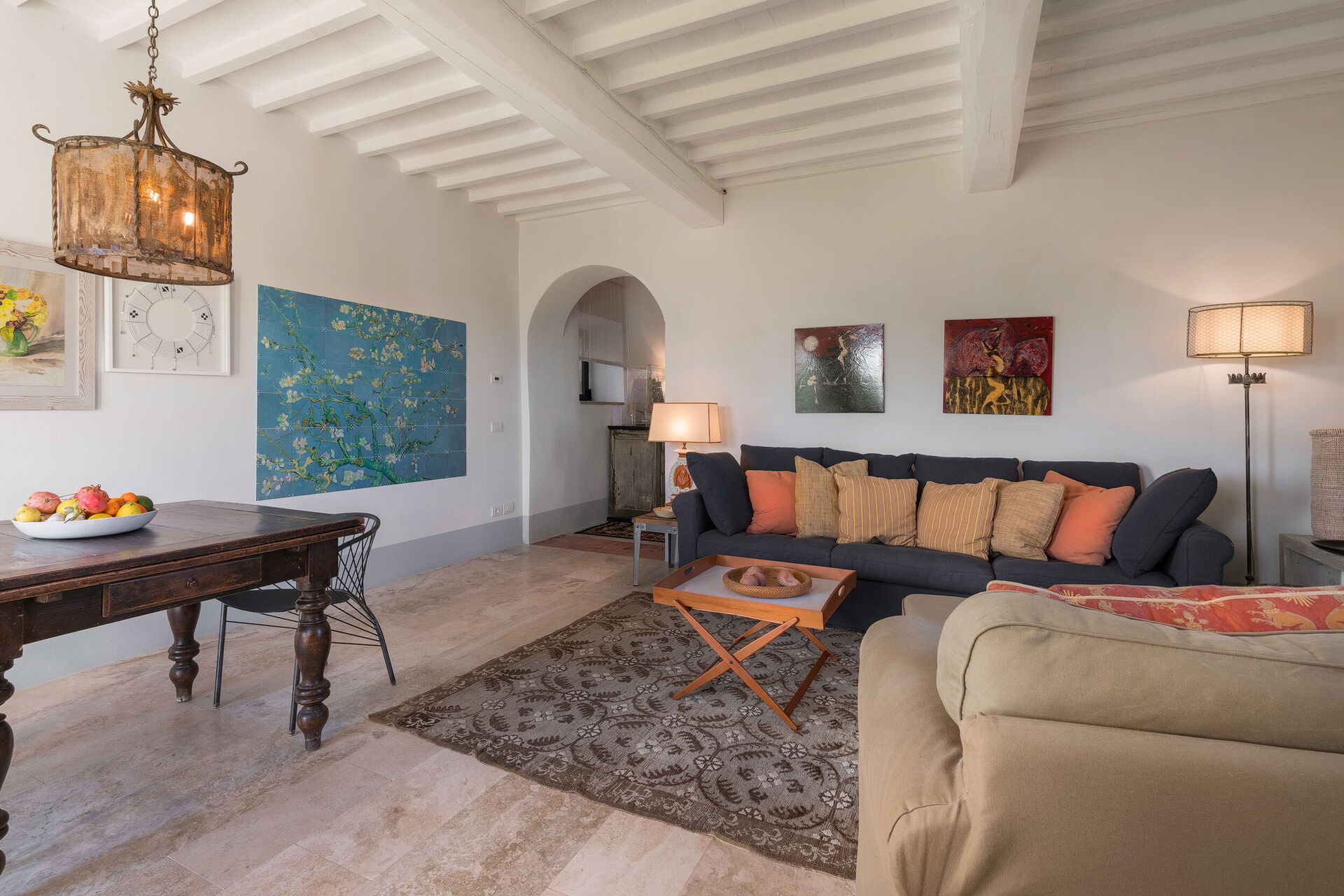 Apartment Linda is a spacious, elegant, one bedroom apartment within a renovated Tuscan farmhouse. Guests have a private terrace for al fresco dining and also enjoy use of a communal pool shared with another 1 bedroom apartment. Delightfully furnished throughout, this is a great base from which to explore the best that Tuscany has to offer.