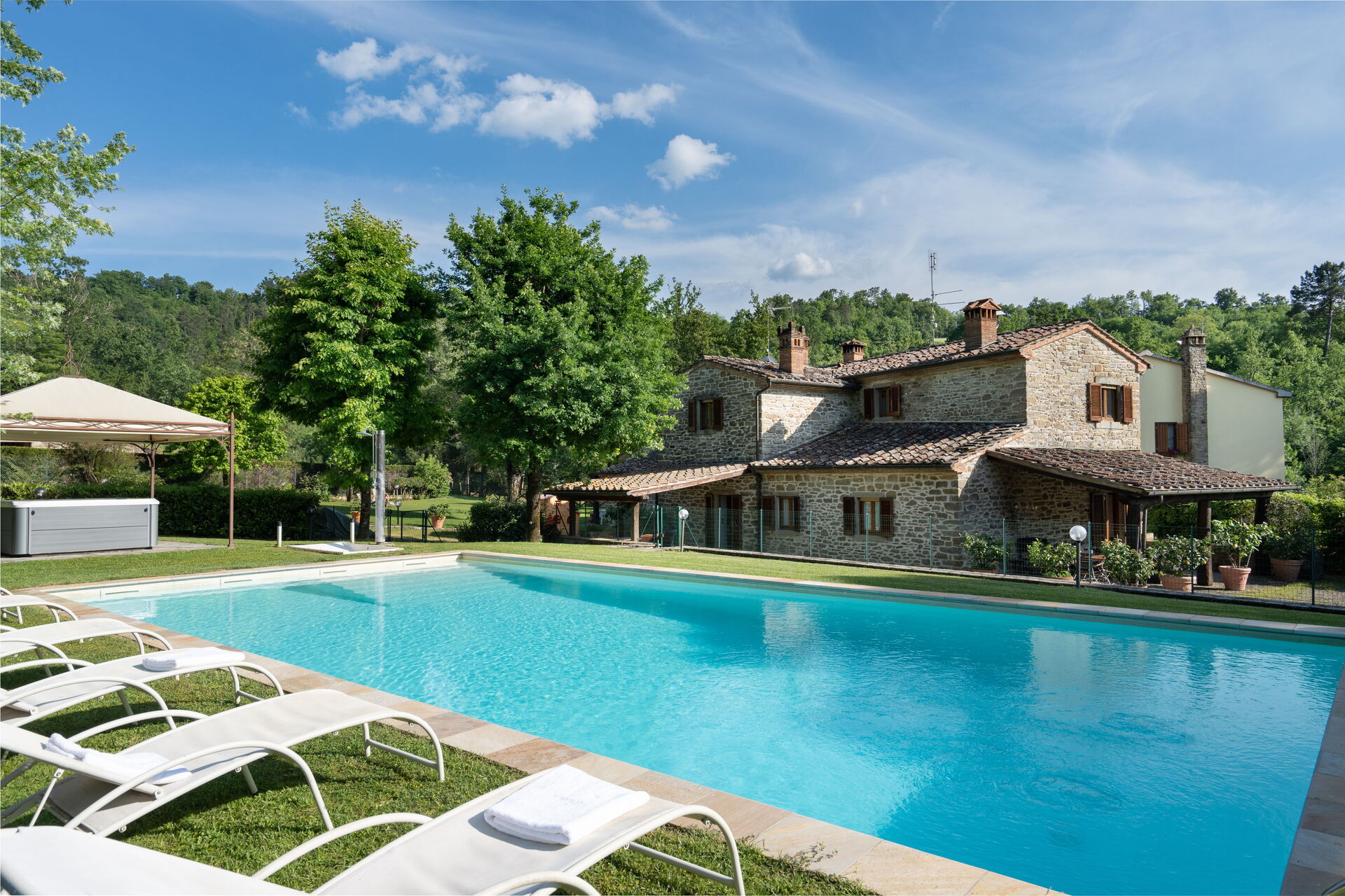 The villa is situated less than 5 km from Subbiano. It is less than half an hour's drive from Arezzo and within an hour of Cortona. It is also within a 90 minute car journey of Tuscan cities such as Florence and Siena as well as being a similar distance away from the Umbrian capital, Perugia. Keen golfers can enjoy a round of golf at the nearby golf course in Poppi, 15 minutes away. Those who enjoy the great outdoors will love the nature on offer in the Casentino Park, one of Europe's most prized areas of forest. Here you will find numerous hiking and cycling trails.