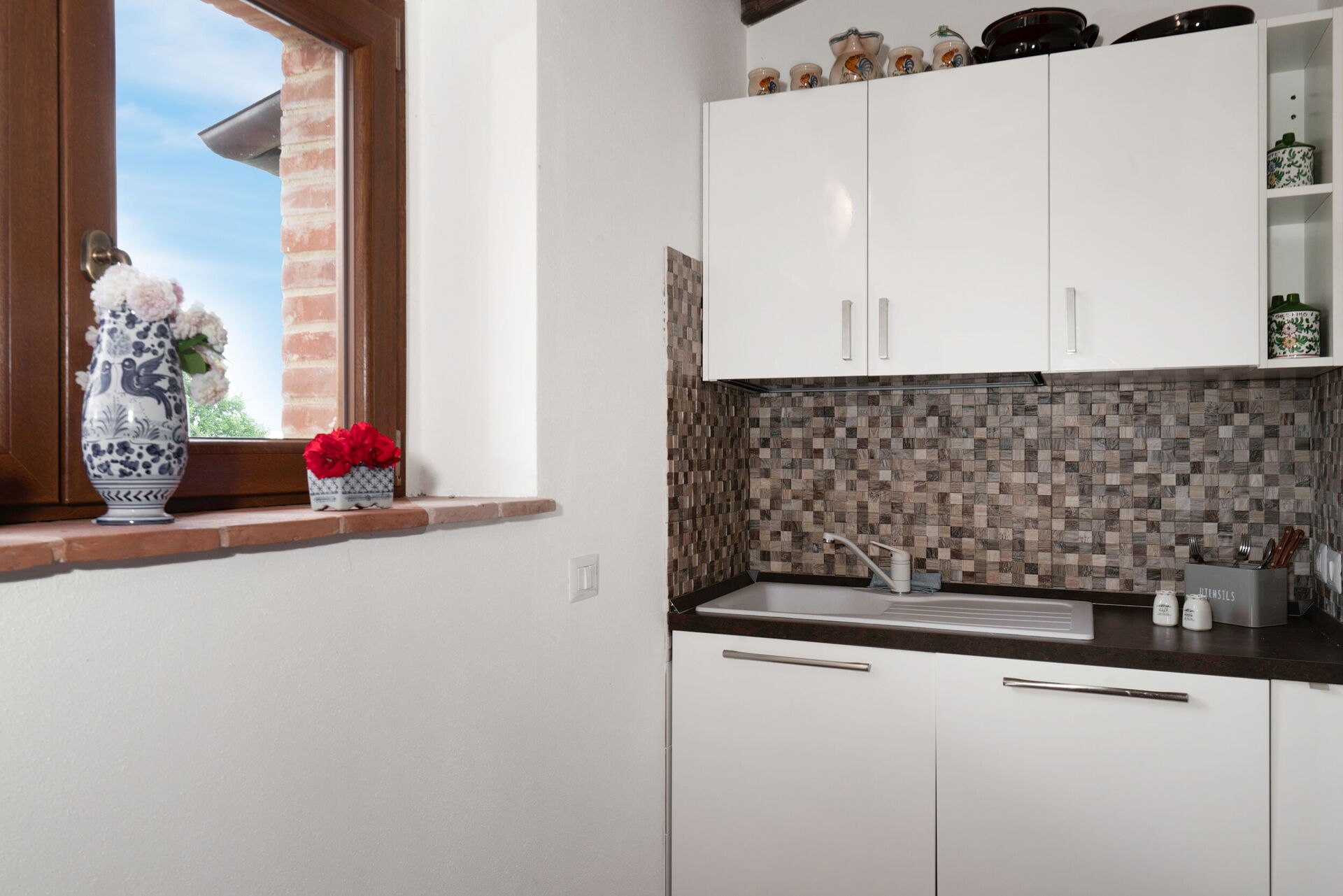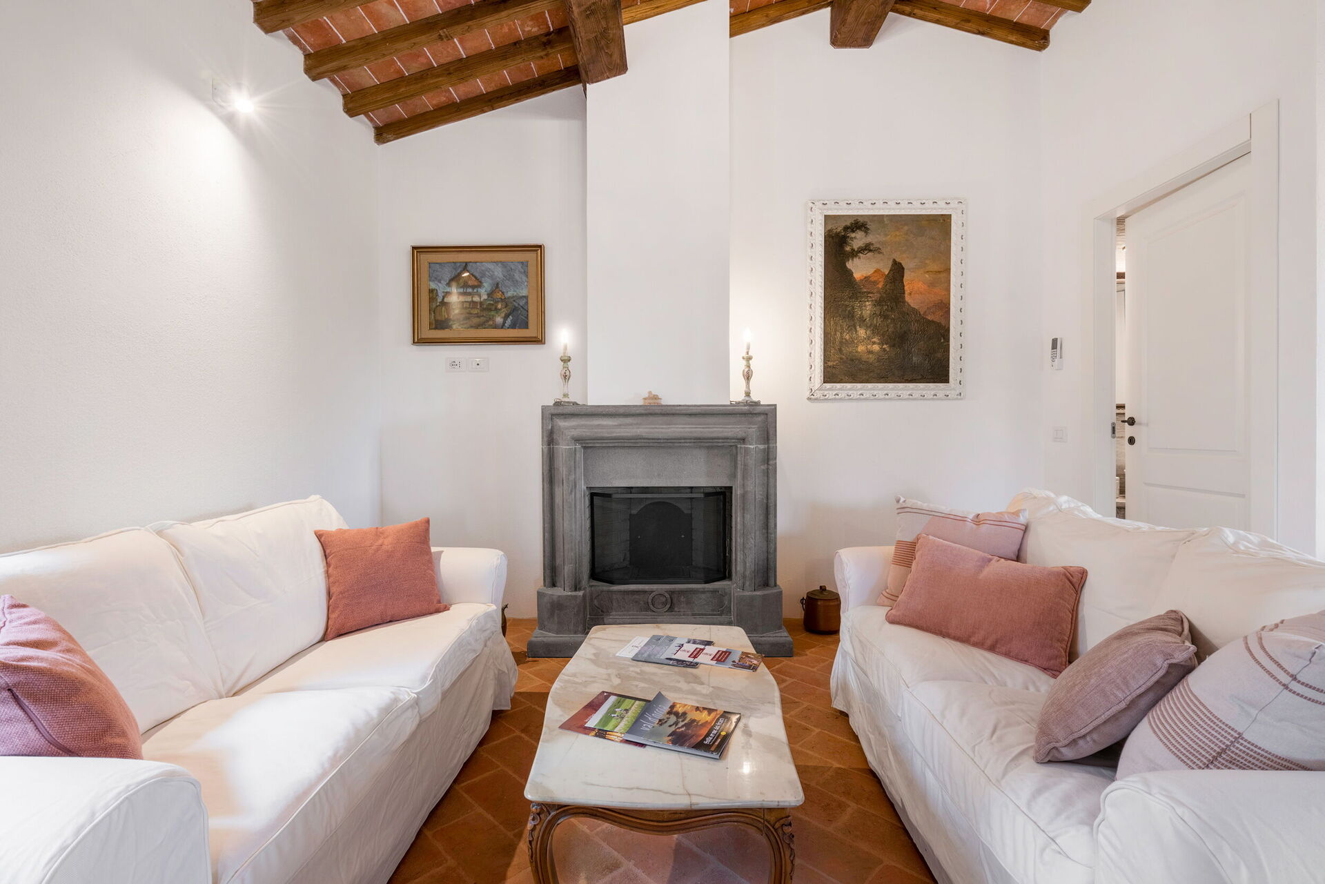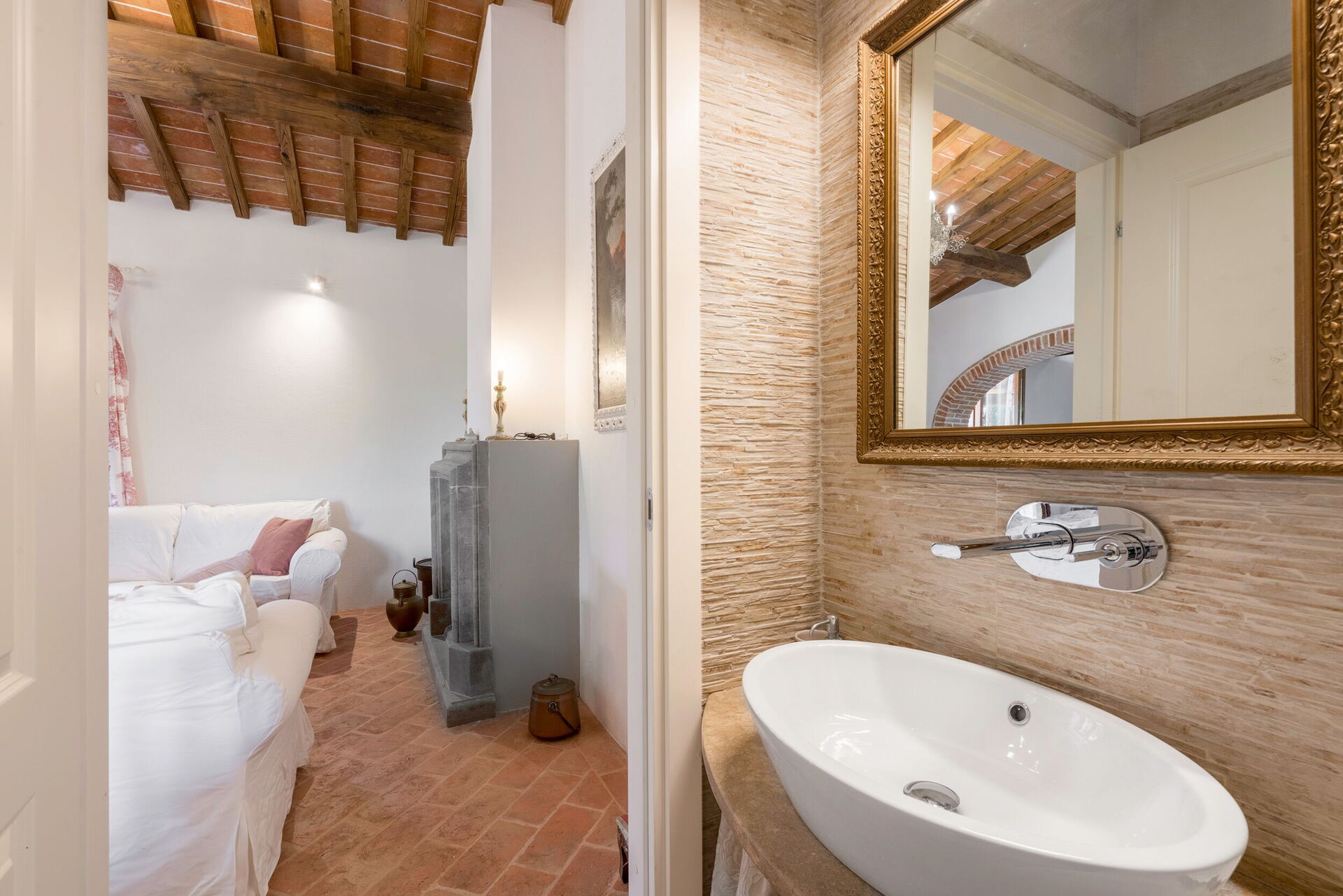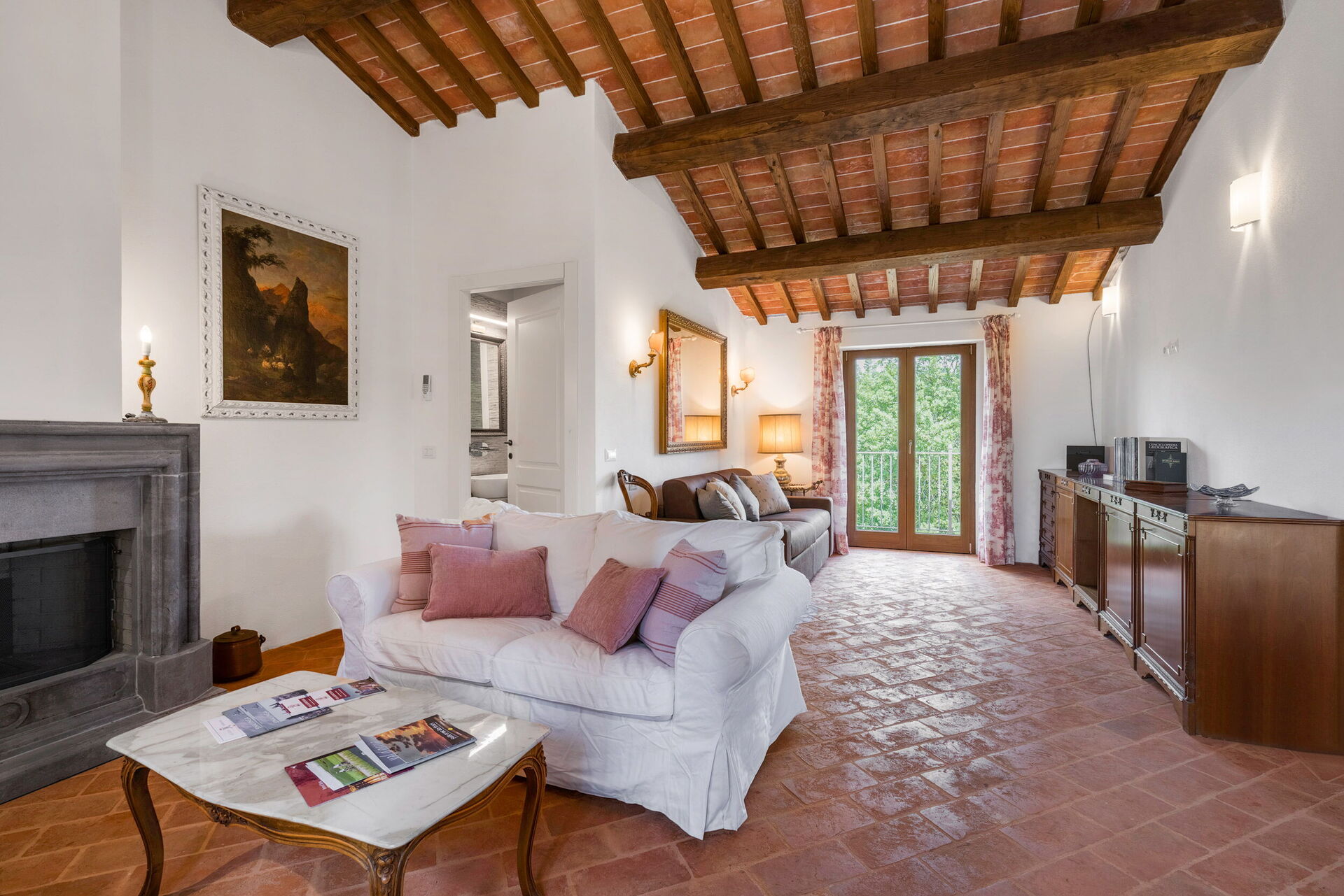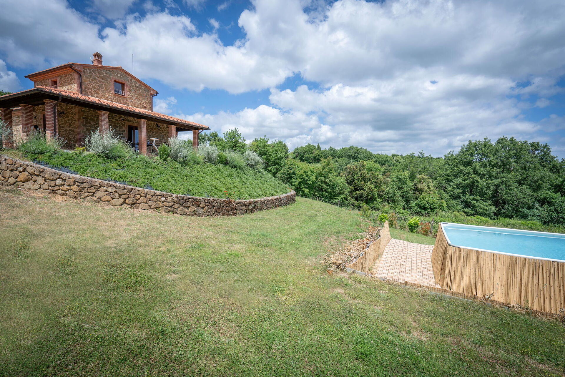 Villa Scrofiano is surrounded by a 500 square metre fenced garden, which in turn is surrounded by vineyards. There is a private swimming pool within the grounds for guests to enjoy. This above-ground pool measures 3 x 5 metres and has a depth of 1.3 metres. This is typically open from 1 May to 30 September each year (weather permitting). A covered terrace sits adjacent to the house furnished with outdoor table and chairs for al fresco dining. There are also deckchairs and sun beds for your comfort and enjoyment. A BBQ is provided too.