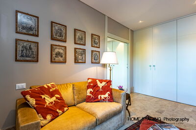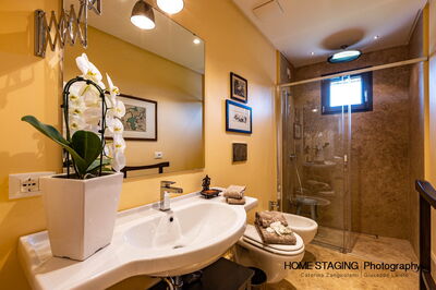 The doors from the living area lead to the outdoor terrace which is furnished with both outdoor dining table and sun loungers. These overlook the natural pond below. Large sails cover this area to provide shade when needed. There is also a professional BBQ here for guests to enjoy. The terrace extends to the side of the villa where there is also a private swimming pool enjoying views of the Metalliferous Hills and the Val d'Elsa. The pool is equipped with a counter-current swimming system and saltwater purification. It measures 7 x 3 metres and has Roman steps for easy access. It's open from the 30 April to 30 October each year. Please note that this can be heated for an additional cost. Also outside is an outdoor shower with hot water.