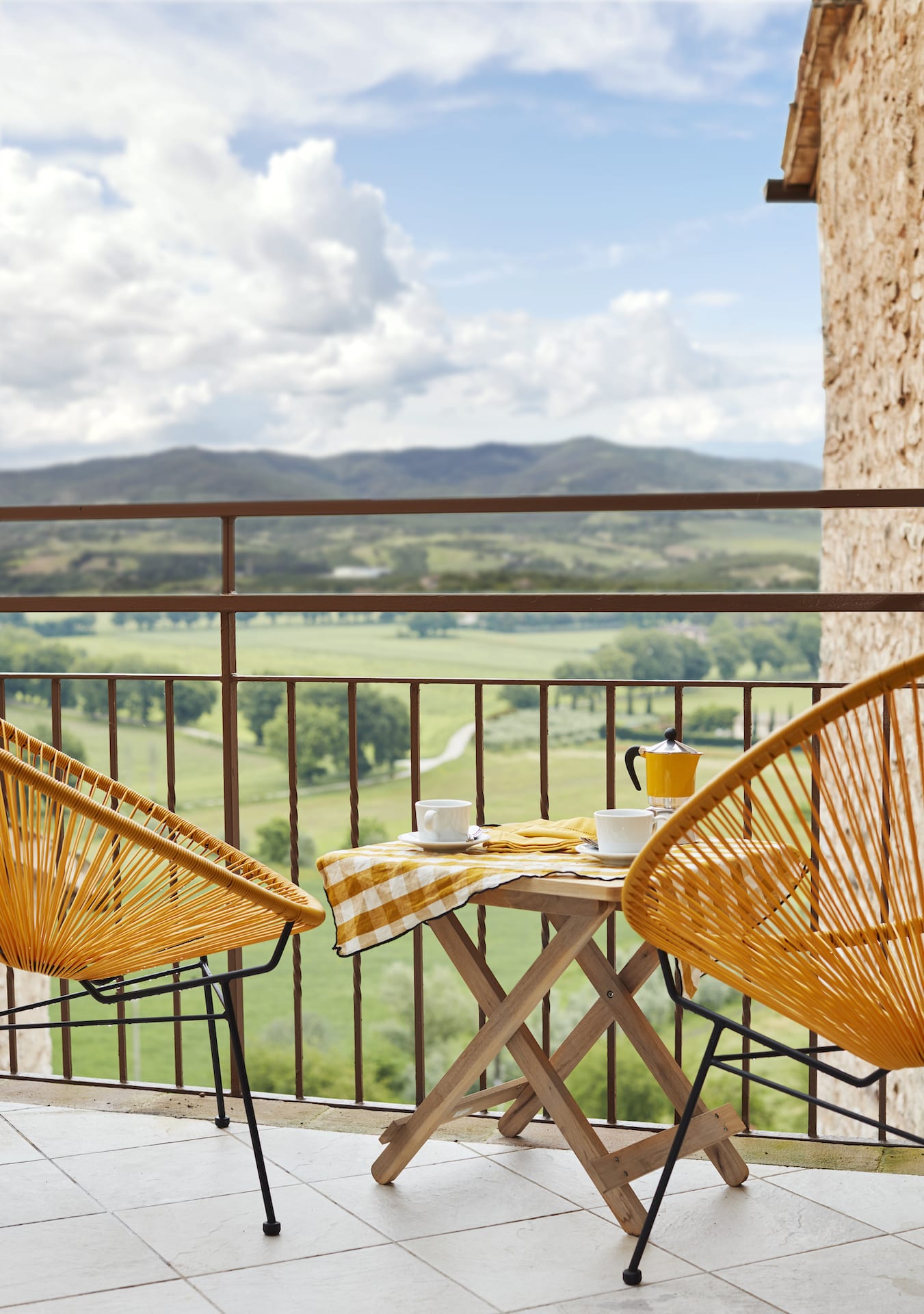 Inside, this Spello apartment rental has a bedroom, open plan living, dining and kitchen area as well as a bathroom whilst outside there is a private terrace enjoying incredible views over Umbria's rolling hills. The apartment measures 50 square metres.