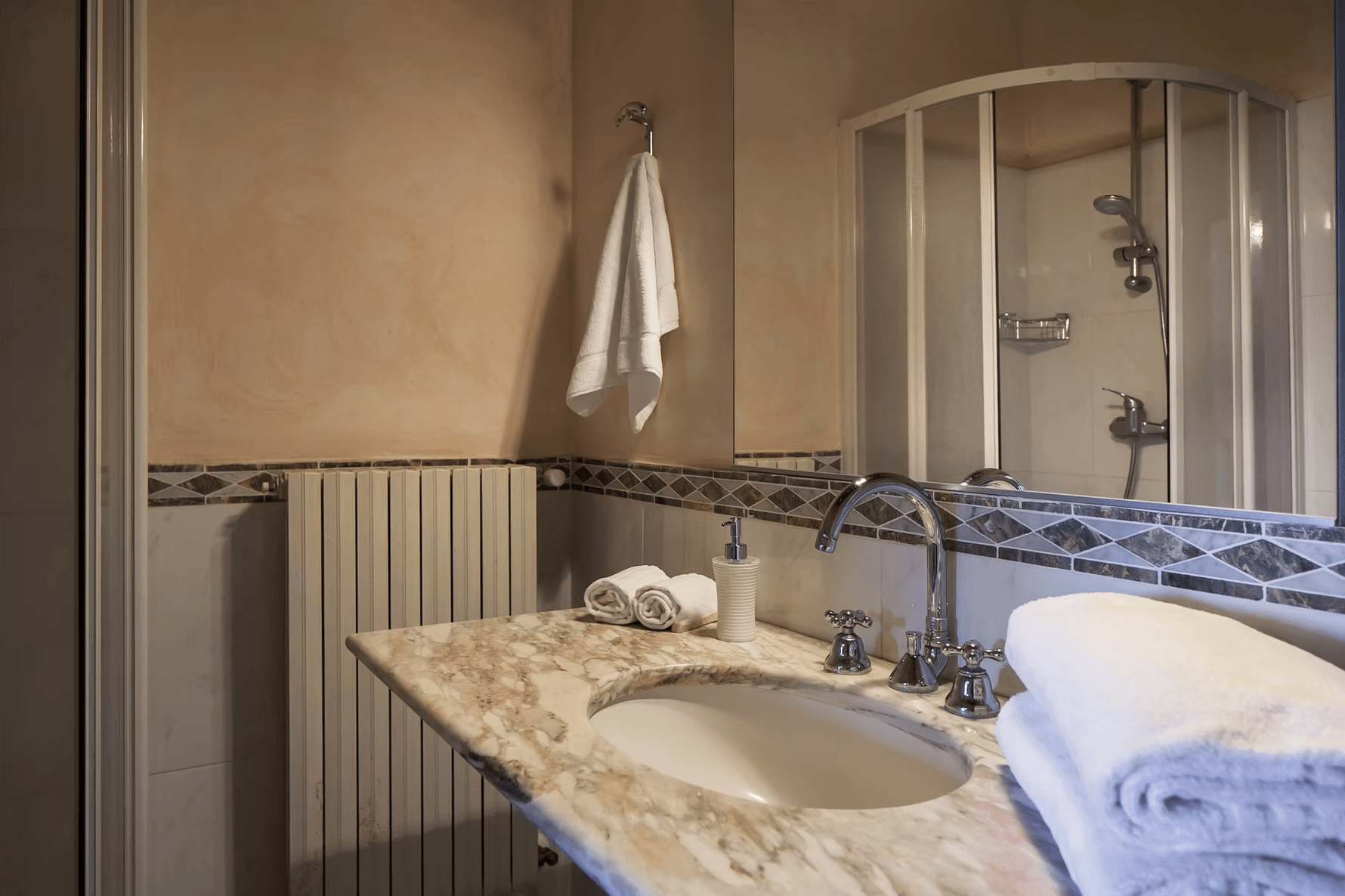 There are 9 bedrooms in total. All are extremely spacious. Six of these have double beds whilst three can be furnished either with 2 single beds or double beds, dependent on your preference. There are also 9 bathrooms. Most have showers but there is a bath tub for those with small children. The decor is traditional, tasteful and elegant throughout.