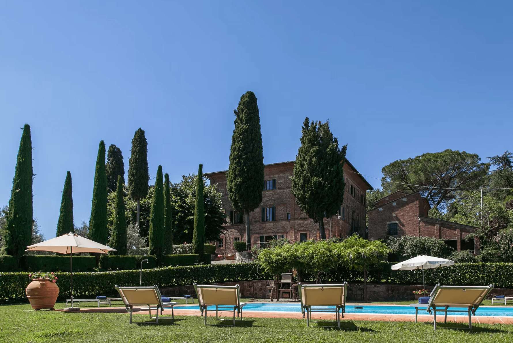 Seven hectares of nature surround the villa, creating an oasis of peace. For those travelling as part of a large group, this space allows everyone to still enjoy some privacy and calm. You can walk among the centuries-old trees, relax in the shade of a pergola or simply let yourself be lulled by the sounds of the Tuscan countryside.