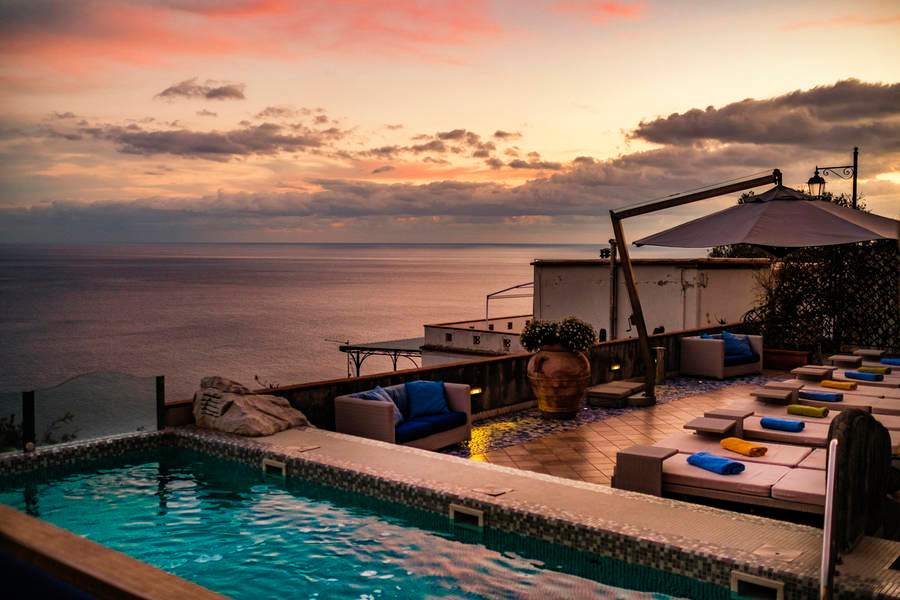 Villa Margherita is a 4 bedroom villa on the Amalfi Coast. Occupying an incredible position overlooking the sea, it enjoys stunning 180 degree views and enjoys plenty of sunshine from sunrise to sunset. Outside there is a small private jacuzzi pool set within a large private terrace. The outdoor space also boasts additional balconies and terraces with sea views.