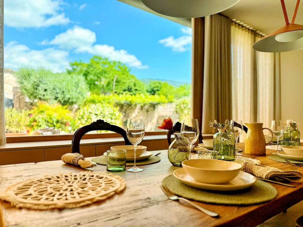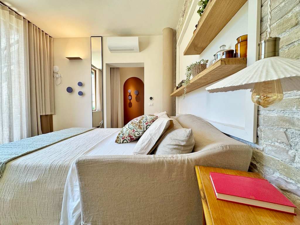 The decor is contemporary, warm and stylish. Natural materials are frequently paired with handcrafted elements and modern Italian design creating a unique space that feels both sophisticated and grounded. For those staying in the Winter months, the property is fitted with underfloor heating whilst in the Summer months there is air conditioning.