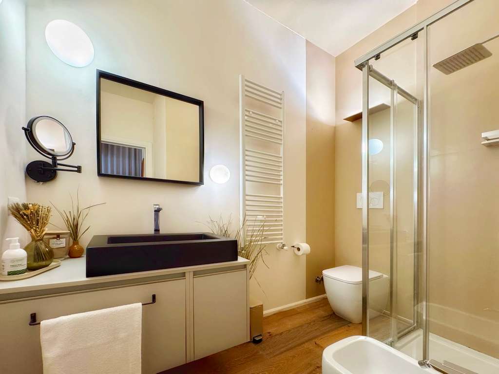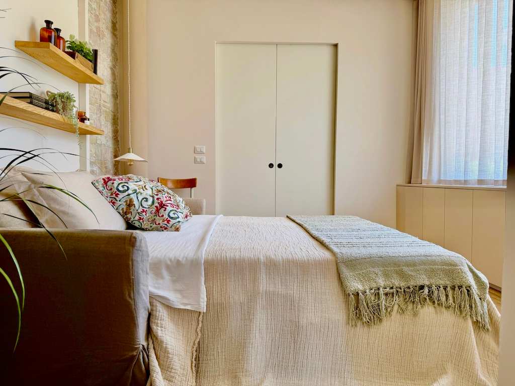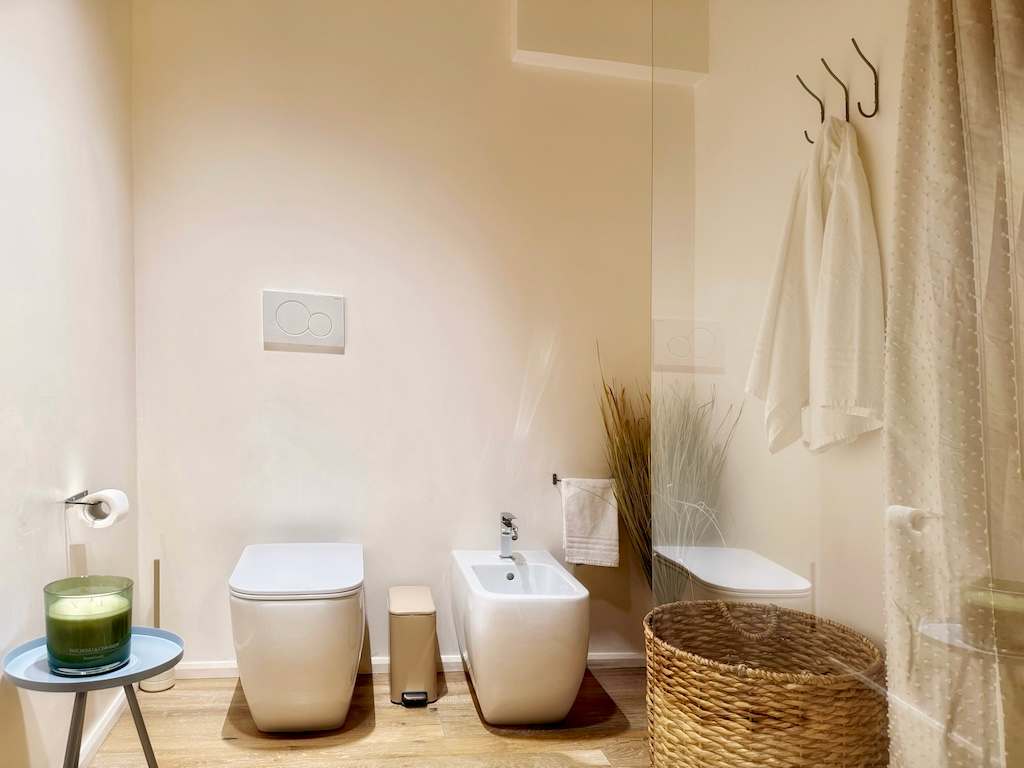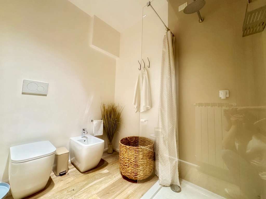 The heart of the home is definitely the open plan living, dining and kitchen area. Floor to ceiling windows bring in plenty of light, blurring the line between indoor and outdoor living. They also make the most of the captivating views of the bell tower of the Monastery of Santa Chiara. The kitchen is fully equipped and is a great space for home cooking or in which to enjoy a private chef experience. High-quality appliances, a complete selection of cookware and a wine fridge all serves to elevate relaxed evenings at home. The living room has large, comfortable sofas whilst the dining area has a large table. The first two bedrooms are both furnished with kingsize beds. The third bedroom has a comfortable double sofa bed. Two of the bedrooms have ensuite bathrooms whilst the third bedroom has a separate bathroom. All are equipped with showers. The layout works well for families or for families travelling together.
