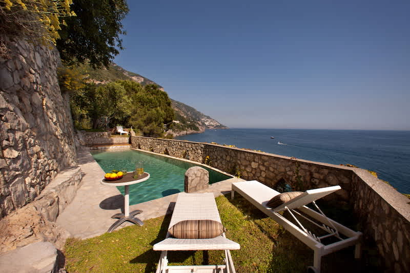 Villa Chi is a beautiful 2 bedroom villa within walking distance of Positano that can sleep up to 4 people. A large private terrace enjoys panoramic views over the Mediterranean seas as well as towards the pastel coloured slopes of Positano and the beach. Guests have use of a communal swimming pool built into the rock and enjoy access to a private beach and beach bar.