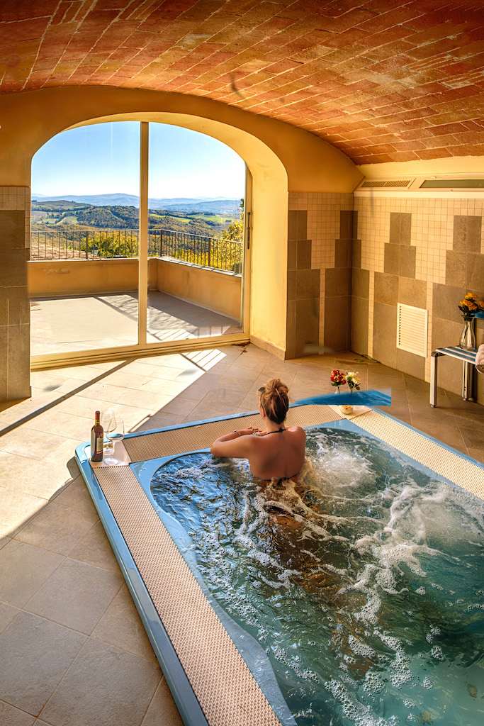 Guests can enjoy the large communal pool set within the grounds. This is positioned to make the most of the wonderful views over the Chianti region below. Please note that pool towels can be provided but are an additional charge of 5 euros per person. Also available for guests to use for an additional charge is an indoor wellness area. Here you will discover a large 5 seater jacuzzi as well as a massage room. We can organise treatments for guests on request. A massage on one of the Japanese beds costs just 10 euros per person for 20 minutes whilst a treatment by our in-house masseuse will cost 25 euros for 30 minutes. The jacuzzi can be used at a cost of 30 euros per 20 minutes.