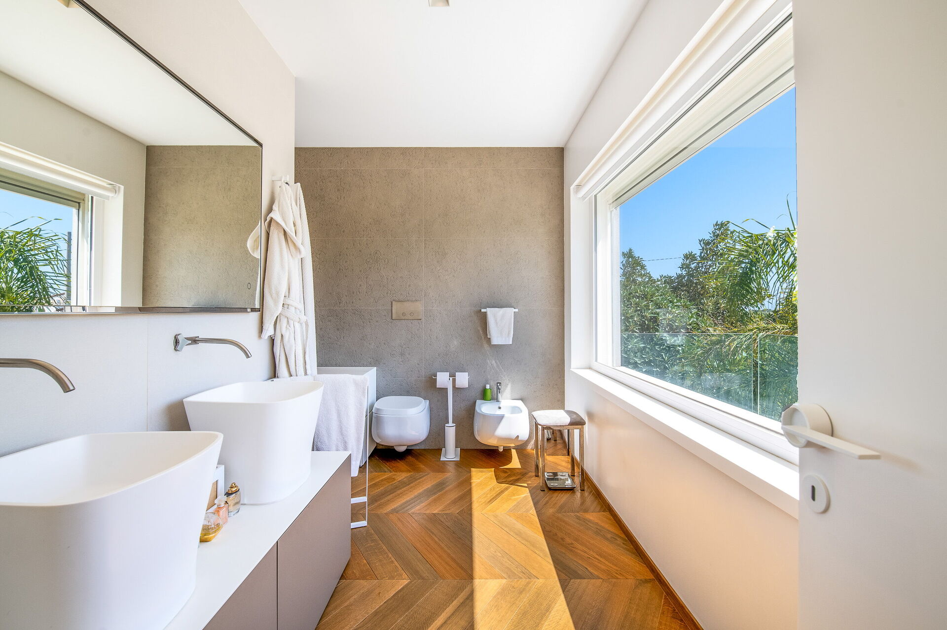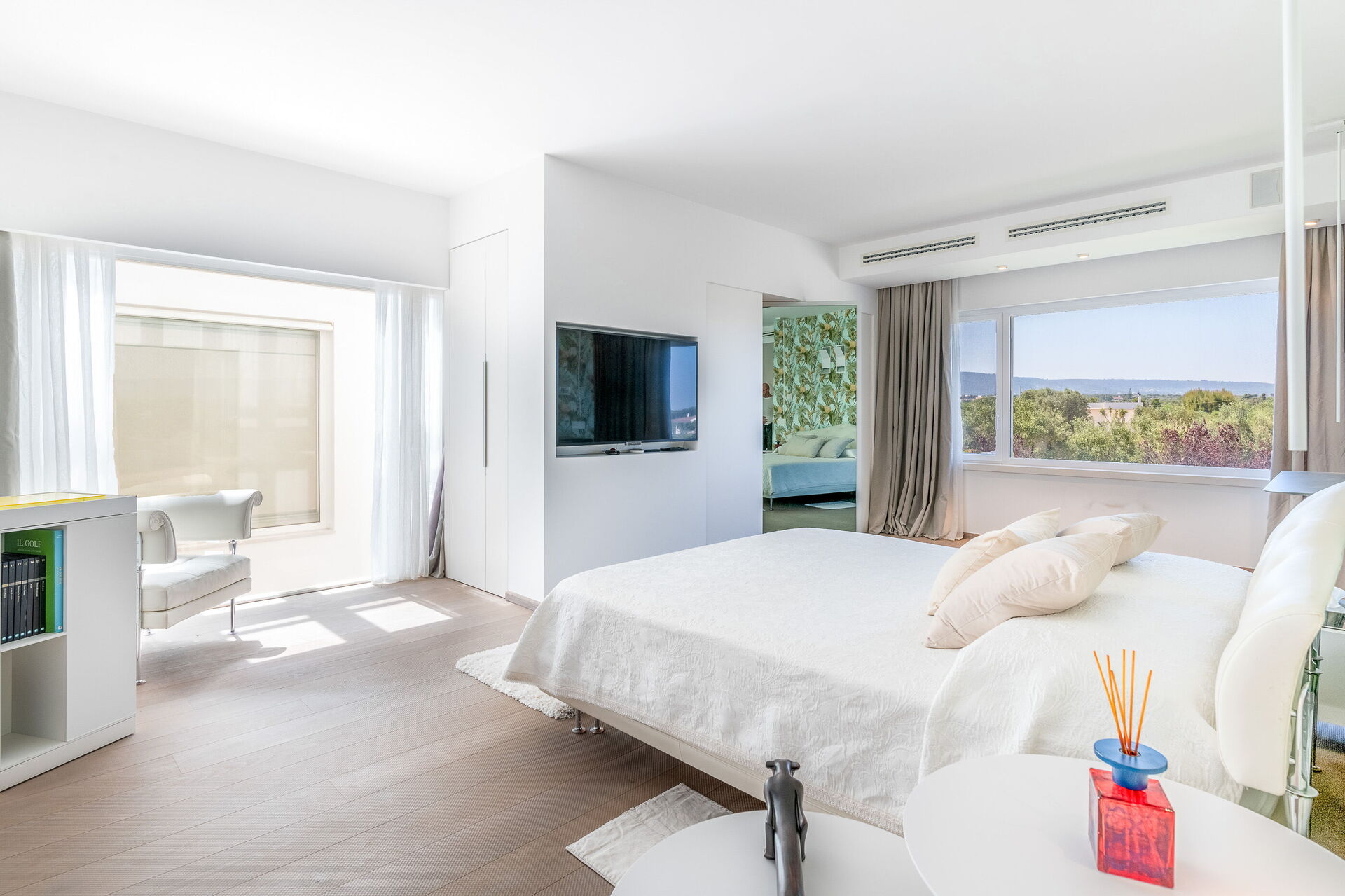 Outside, guests will find a private infinity swimming pool set in extensive gardens. The crystal walled pool measures 28 square metres and can be heated for an additional charge of 1 euro per kWh. Please ask for more details. It is open from 30 April to 30 October each year. The gardens themselves extend over 10,000 square metres and also include a solarium and gazebo, perfect for relaxing and enjoying the view! Golf lovers will find a professional putting green within the grounds which is lit at night to ensure it can be enjoyed long into the evening too.